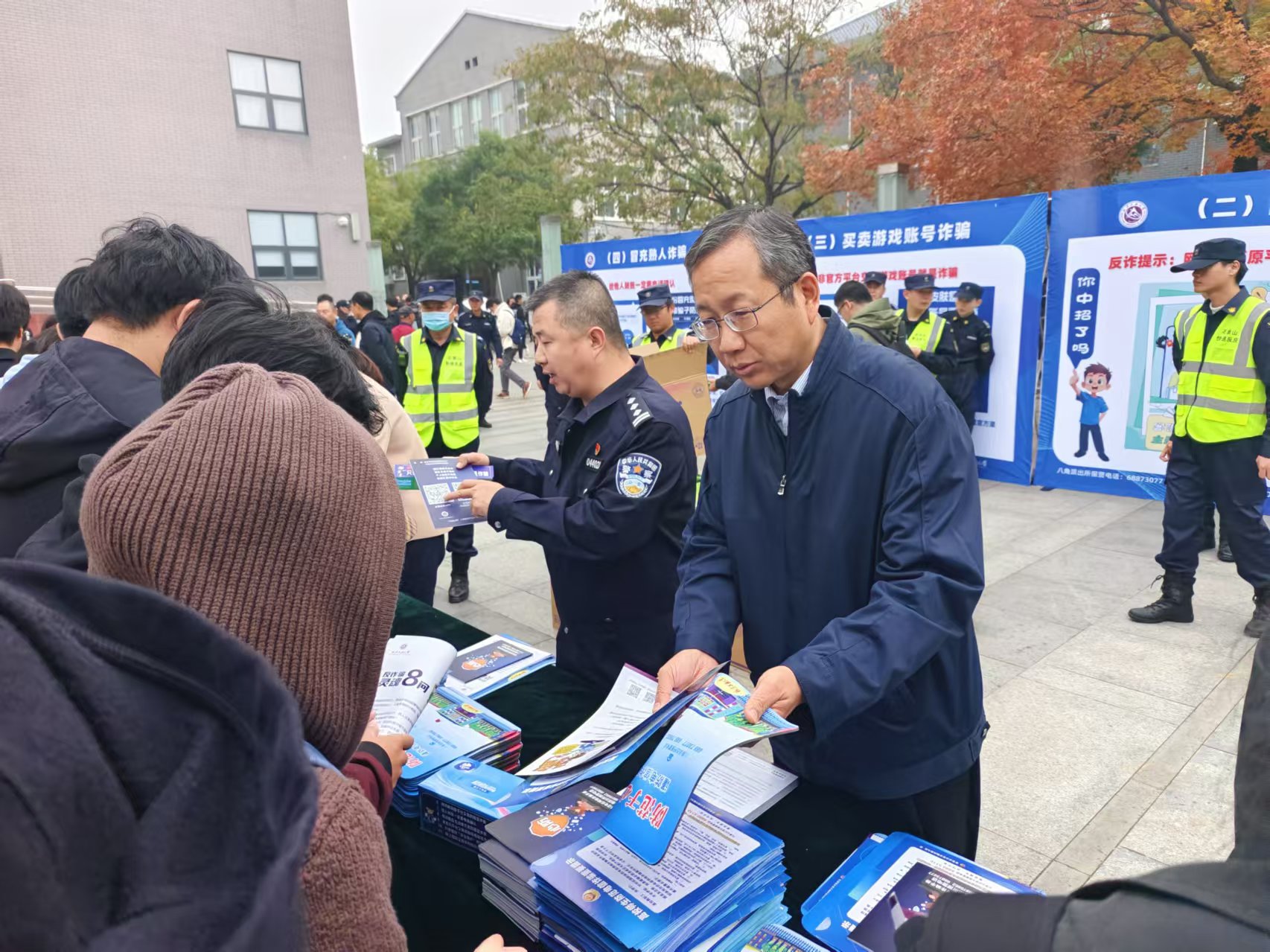 10月31日,我校联合八角街道、八角派出所在毓秀广场举办反诈宣传员聘书授予仪式暨防范电信网络诈骗主题宣传活动,校党委副书记史贞军、八角街道办事处政法委员兼平安办主任梁宏茹、八角派出所政委赵明龙出席活动,安稳部、学工部、校团委等部门以及各学院师生共500余人参加了宣传活动,安稳部部长郑泰平主持活动。